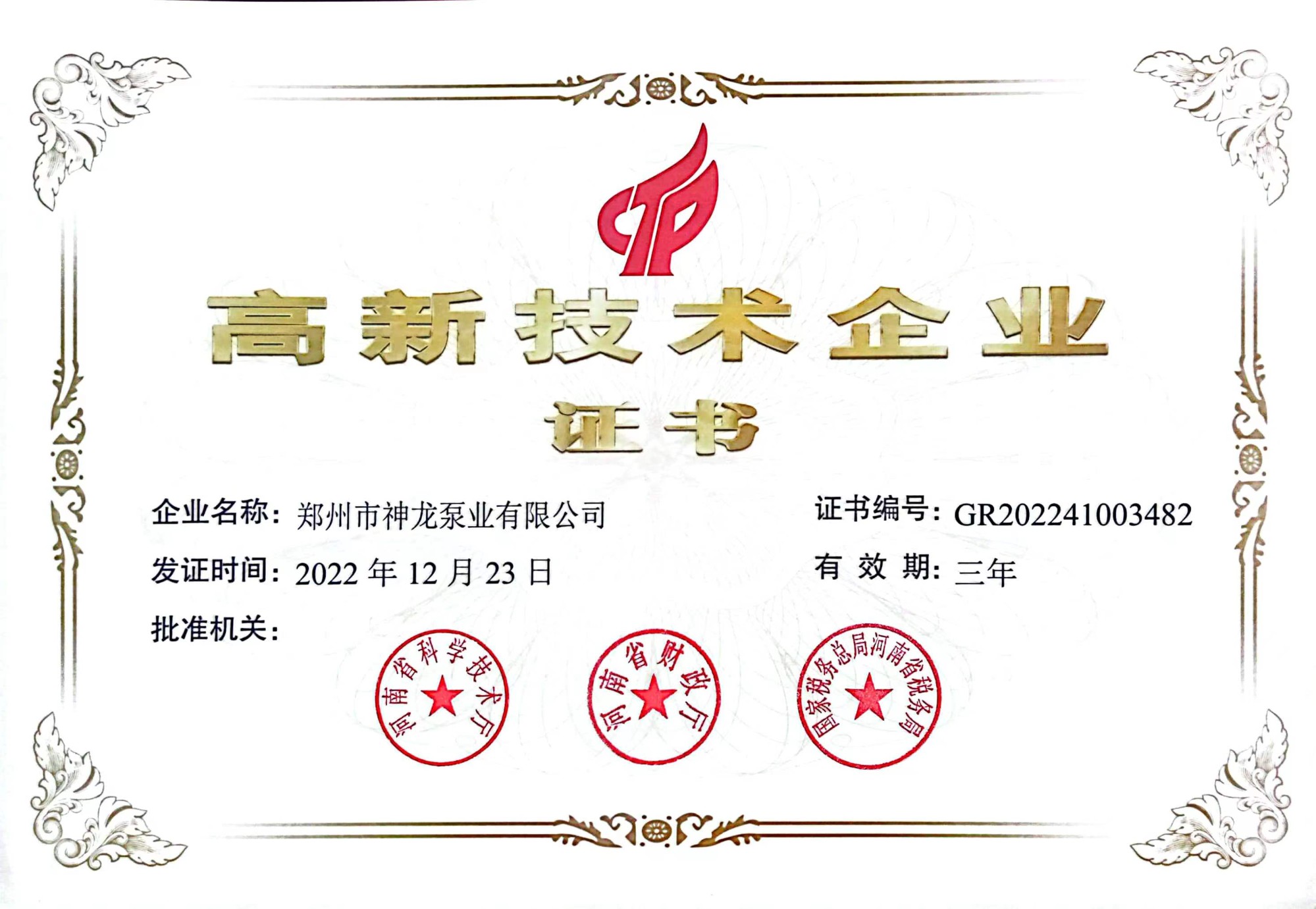 高新技術(shù)企業(yè)證書